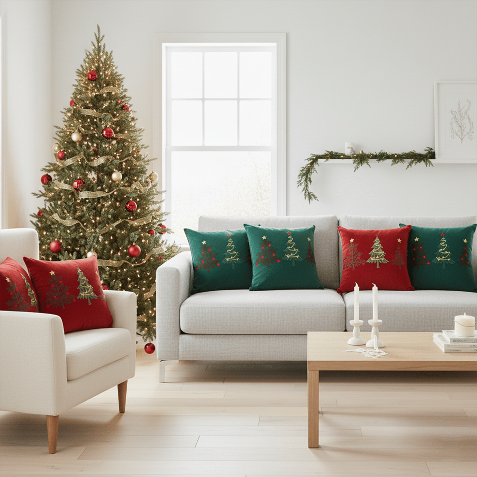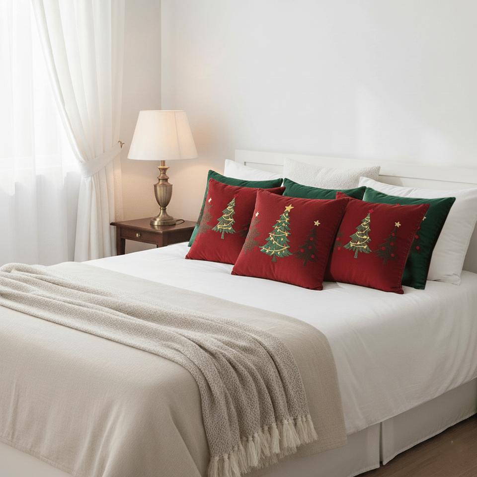 6PC Christmas Tree Trio Pillowcase Set Red and Green 45cm Festive Cushion Covers for Holiday Decor