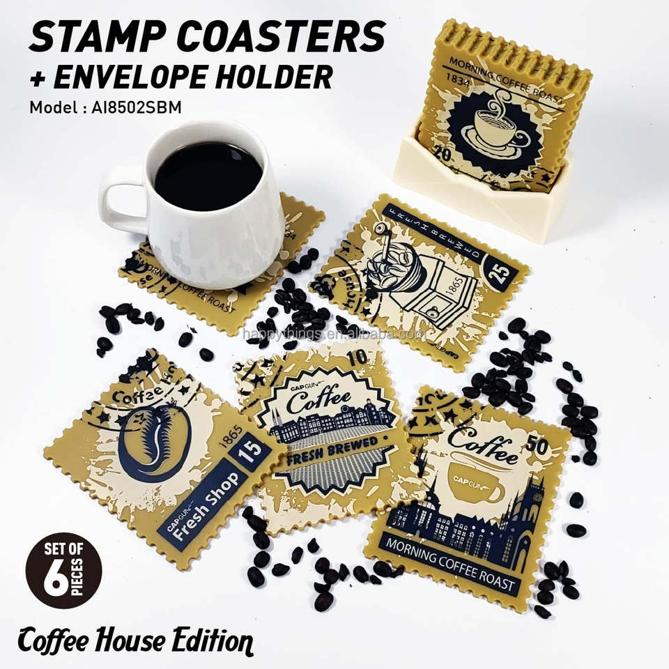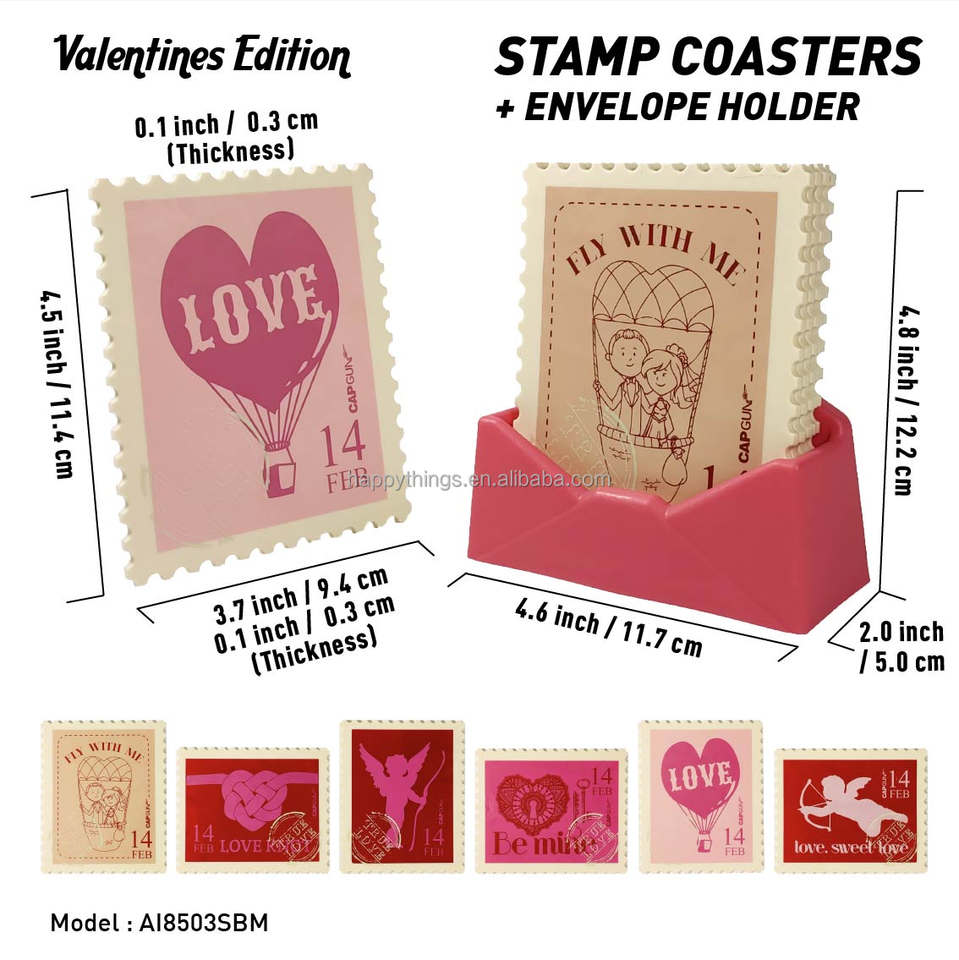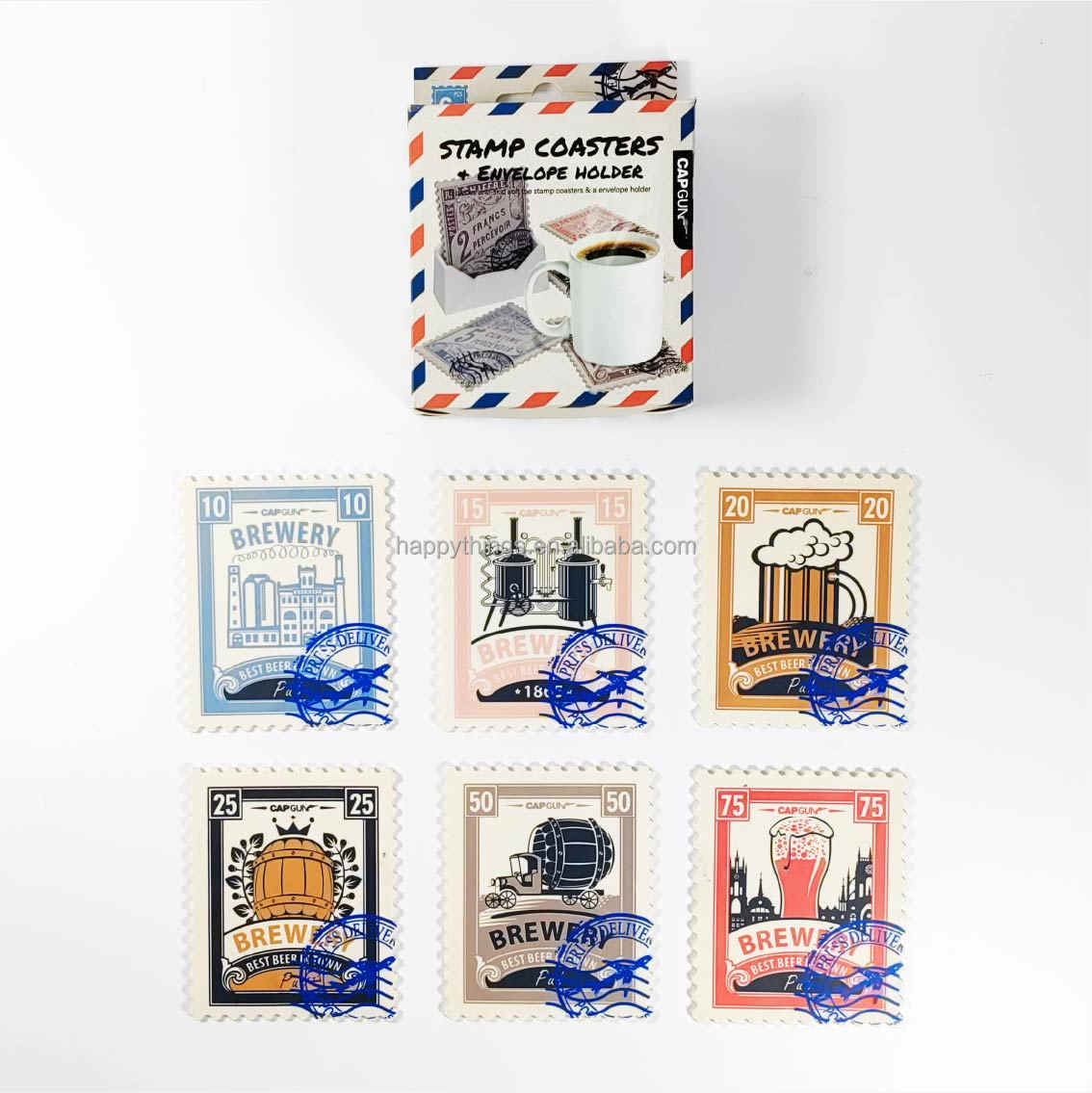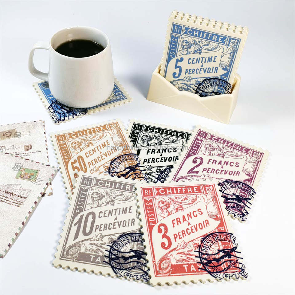 Item Name:Postal Souvenir Stamp Novelty Drinking Coaster Set with Holder