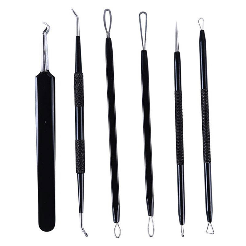 6pcs Set Blackhead Remover Skin Care Kit Stainless Steel Blackhead Acne Pimple Extractor Pore Cleaner Beauty Tool Leather Bag