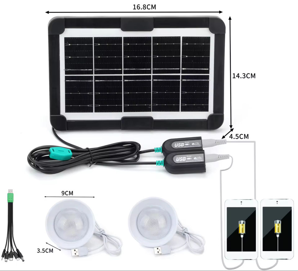 6V3W Mini Solar Panel with USB Stabilizer Portable 5-in-1 Cable Charger for Phones Small Size Garden Application Solar Panel