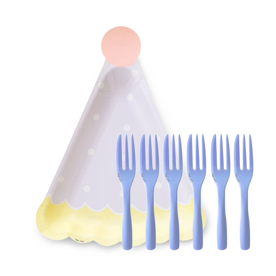 6inch Biodegradable Eco-friendly Disposable Custom Paper Plate Set with 6 Plates + 6 Forks Party Use with Tray