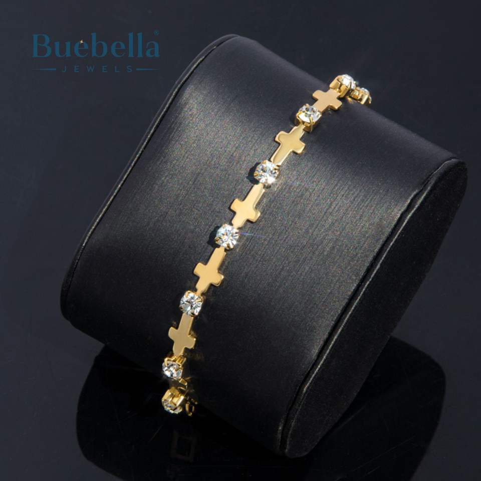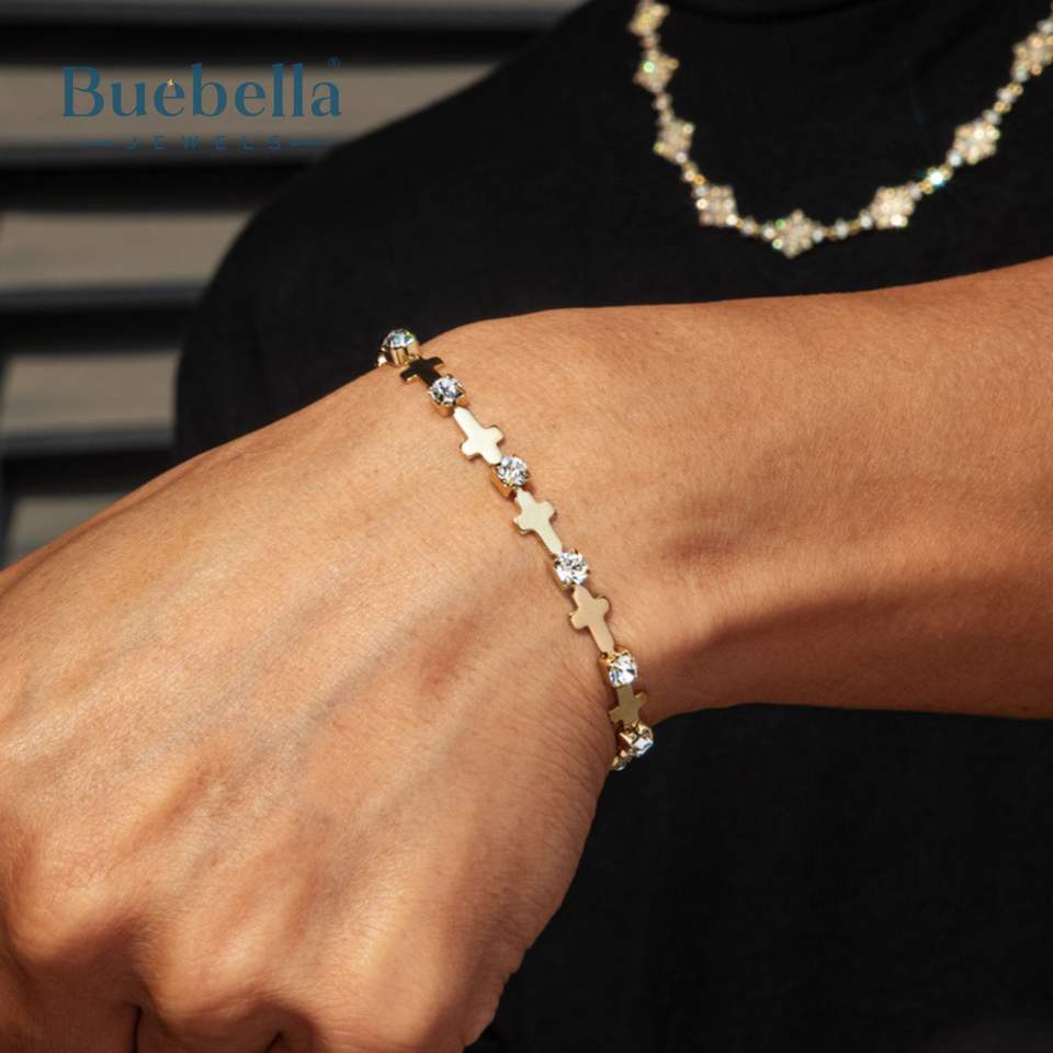 6mm 18K Gold and 925 Sterling Silver Plated Round Brilliant Cut Moissanite Cross Chain & Link Hiphop Bracelet for Men