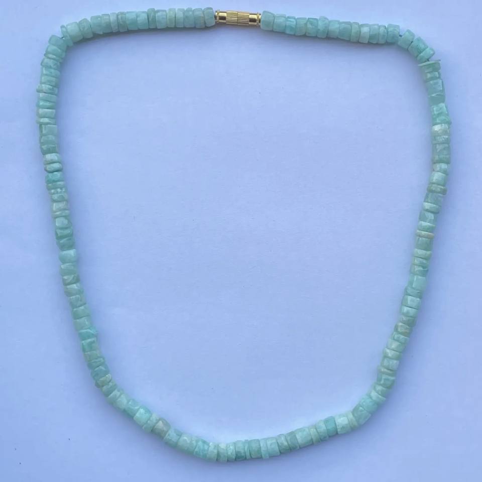 Product Name:Natural Amazonite Smooth Heishi Tyre Gemstone Beads Necklace