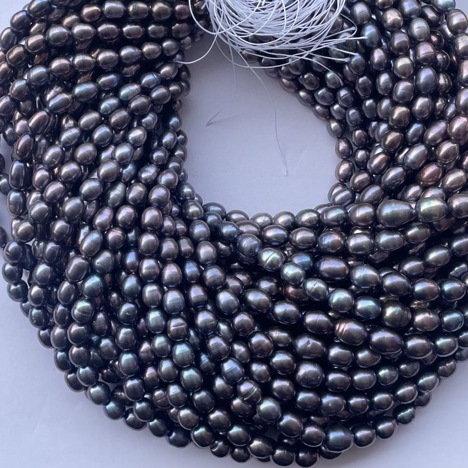 Product Name:6mm 8mm Natural Black Rainbow Color Freshwater Pearl Stone Rice Strand