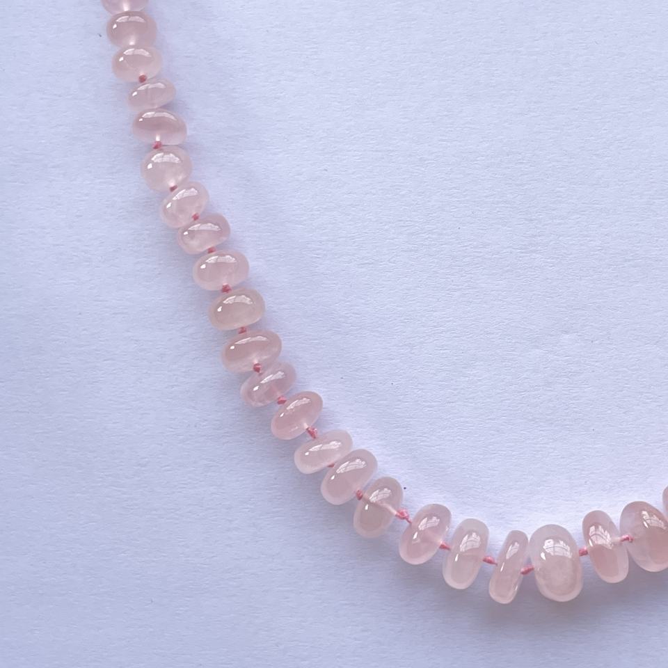 Product Name:Natural Rose Quartz Hand Knotted Smooth Rondelle Beads Necklace