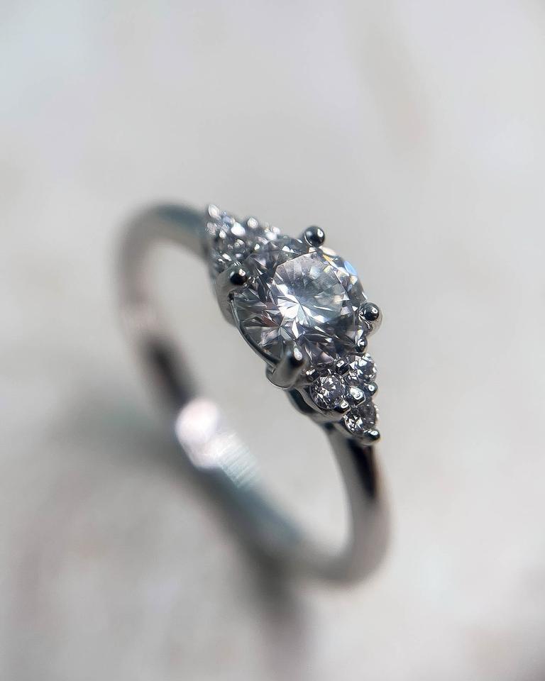 6mm Round White CZ Engagement Ring in 925 Silver | Cluster Accent CZ Band Wedding Anniversary Promise Jewelry OEM