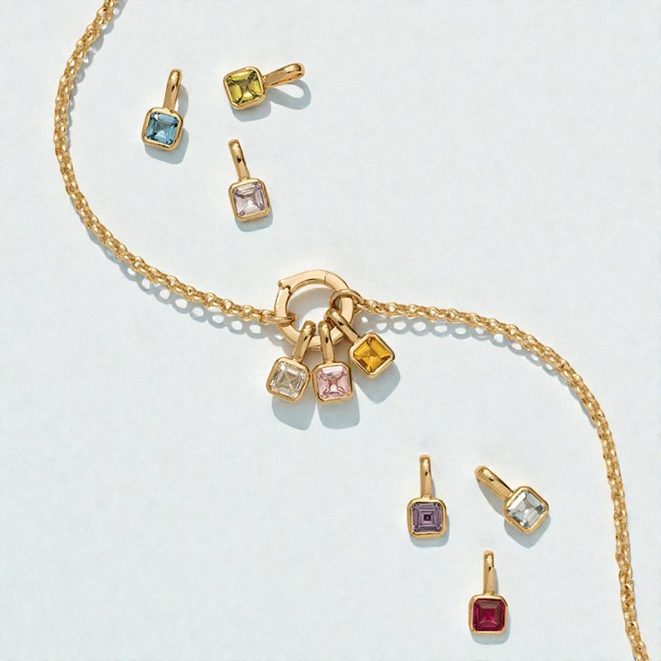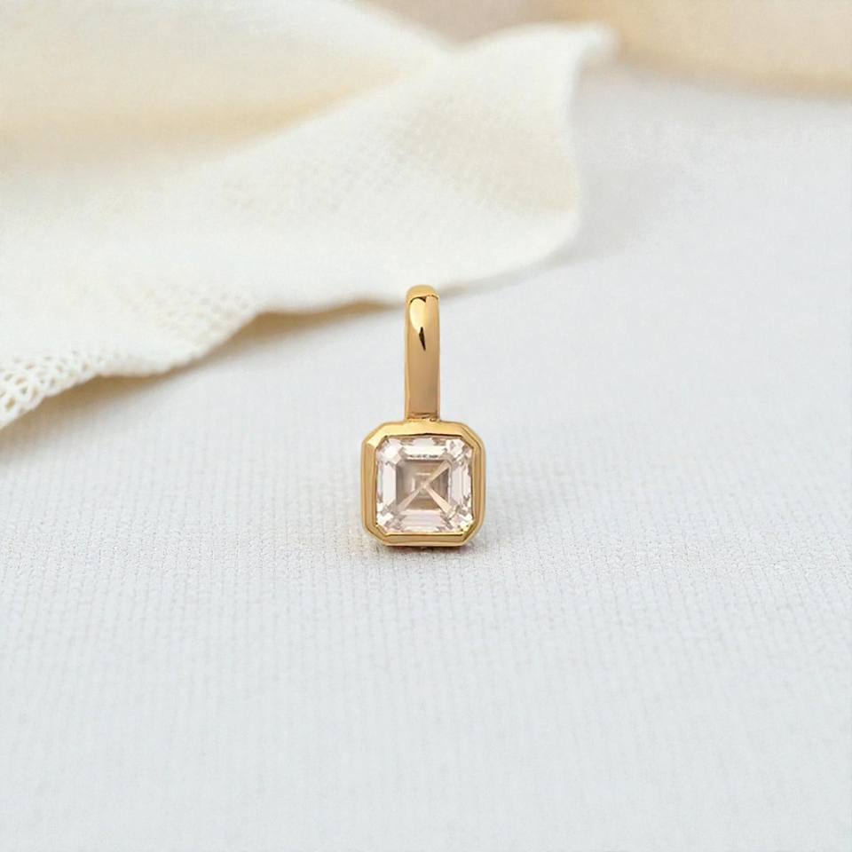 6mm Square Gemstone Collet Charm Pendant | 14K Gold Plated 925 Silver Birthstone Charms for Jewelry Making Wholesale