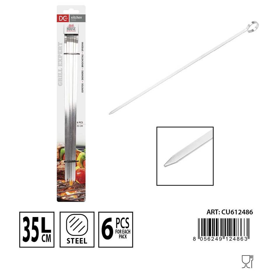 6pcs 35cm Stainless Steel Skewers for BBQ Large Metal Iron Sticks Customizable Size Modern Outdoor for Camping Home Use