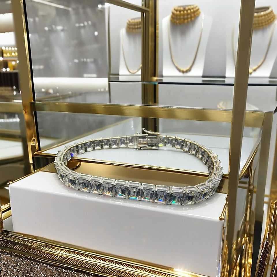 6x4mm Emerald Diamond Tennis Bracelet White Gold Plated Sterling Silver Handmade Luxury Engagement Gift for Women