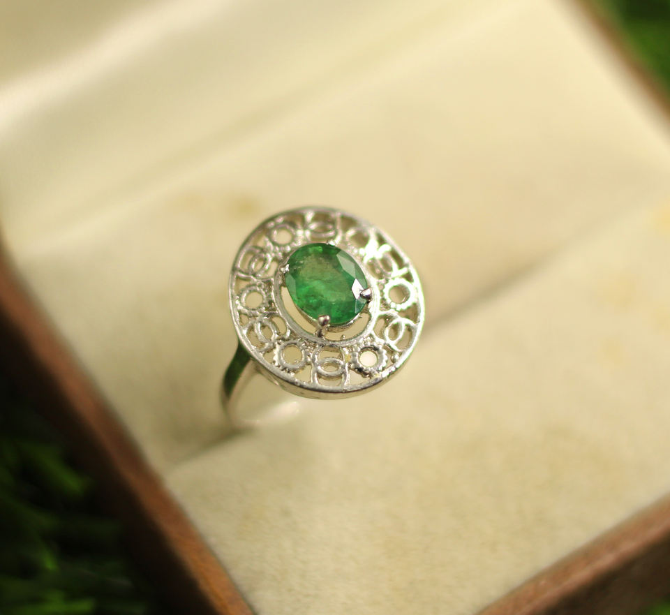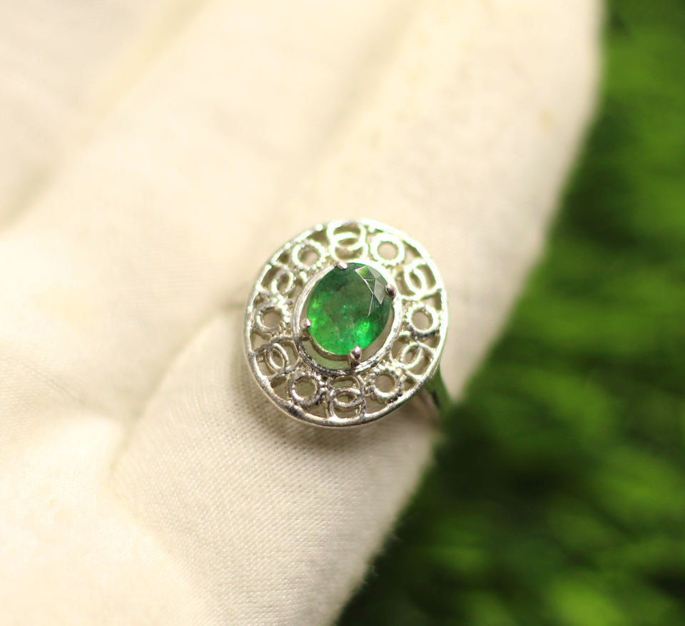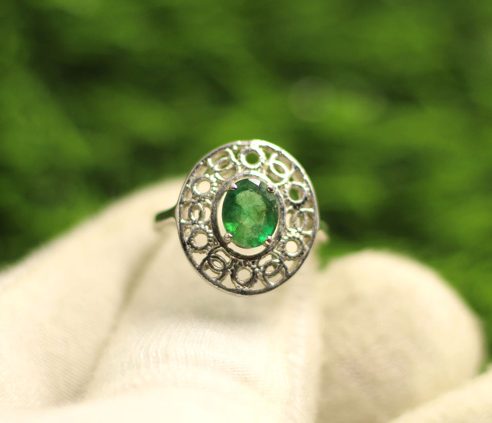 6x7mm Natural Zambian Emerald 925 Sterling Silver Fine Ring Classic Oval Shape Prong Setting Rhodium Plated for Anniversaries