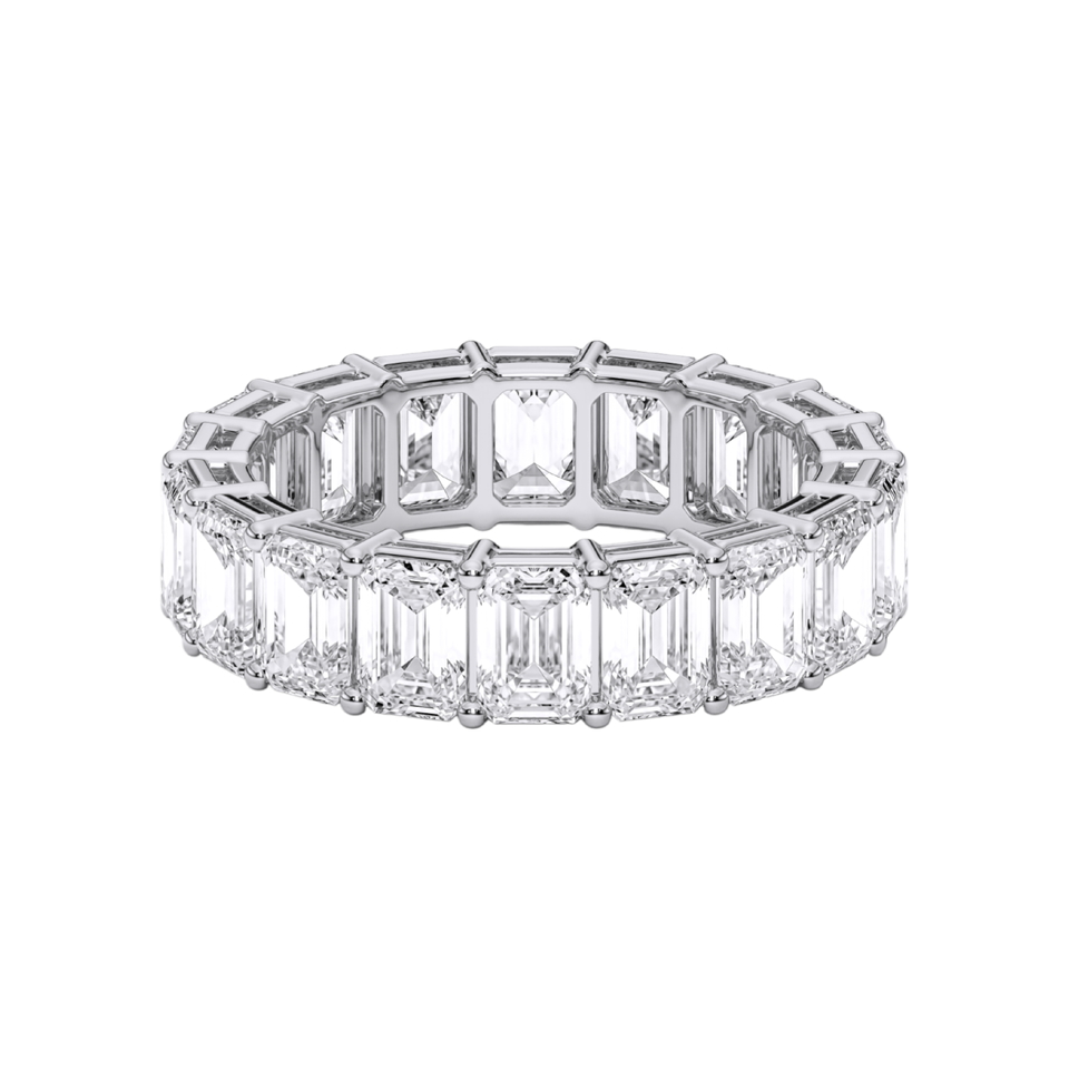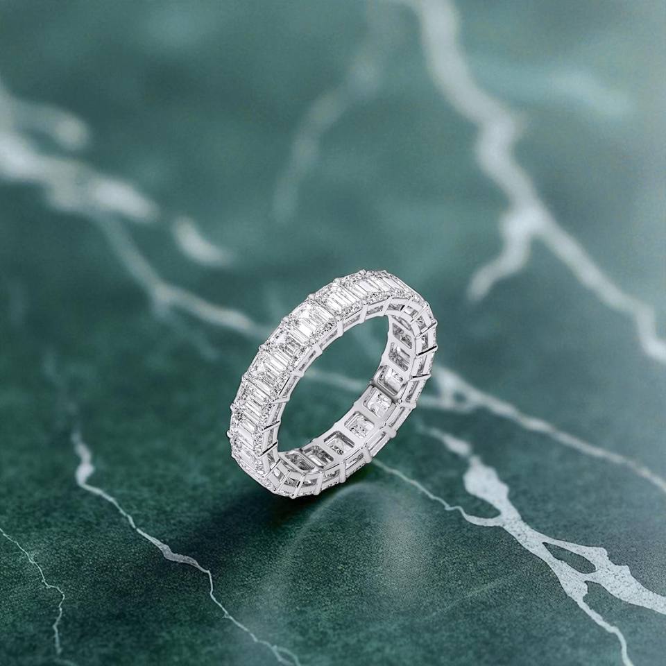 7.00 Carat E-F/VVS-VS Moissanite Emerald Cut Diamond Eternity Band Ring Made in Platinum For Her
