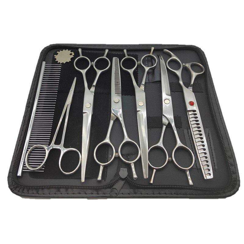 7.5-inch Professional Pet Grooming Scissors Set Straight Curved Scissors Shark Scissors Silver Kit