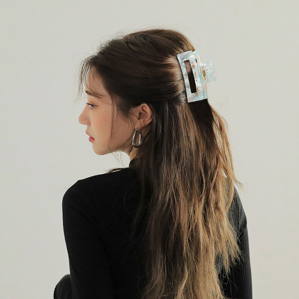 7.5cm Colorful Resin Tortoise Stripe Rectangle Hair Claws Clips for Women Hair Grab Hair Accessories
