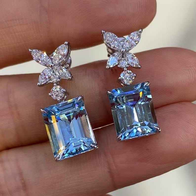 7.66ct Emerald Cut Aquamarine And Marquise White Zircon Drop Earrings Santa Maria Aquamarine Fine Elegant Jewelry