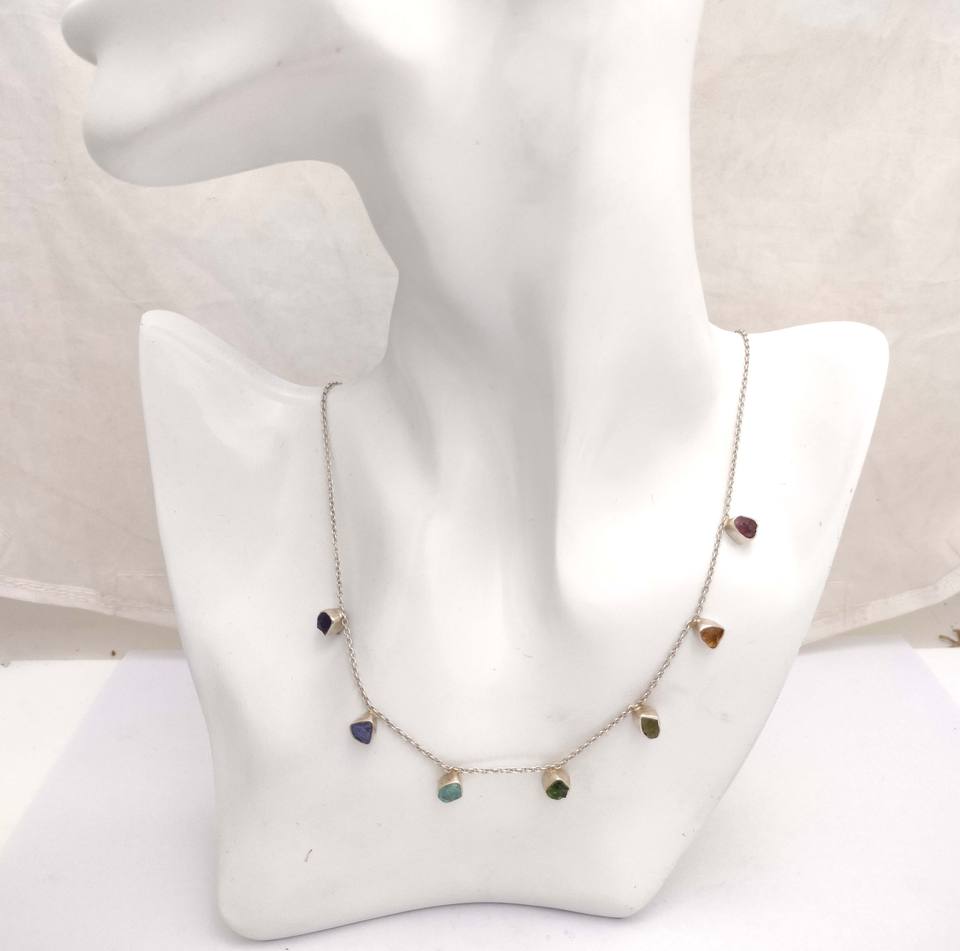 7 Chakras Stone Pendant Necklace Jewelry with Natural Gemstones Solid 925 Sterling Silver Pendant