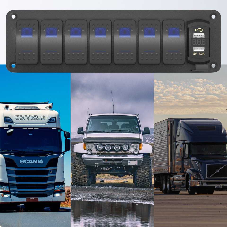 7 Gang Rocker Switch Panel With 5V 4.2A Dual USB Charger Blue LED For Trucks
