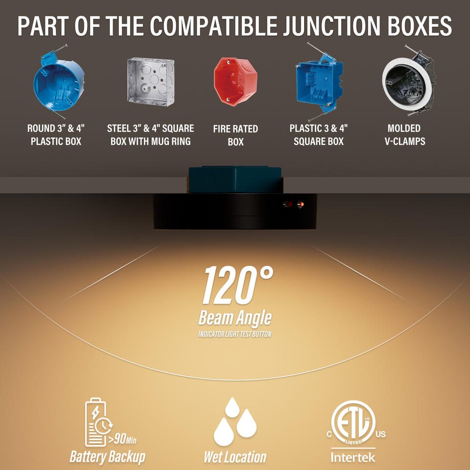 7 Inch LED Emergency Battery Backup Lighting Kitsurface Mount 5CCT Recessed Mount ETL Ceiling Light 120-277V