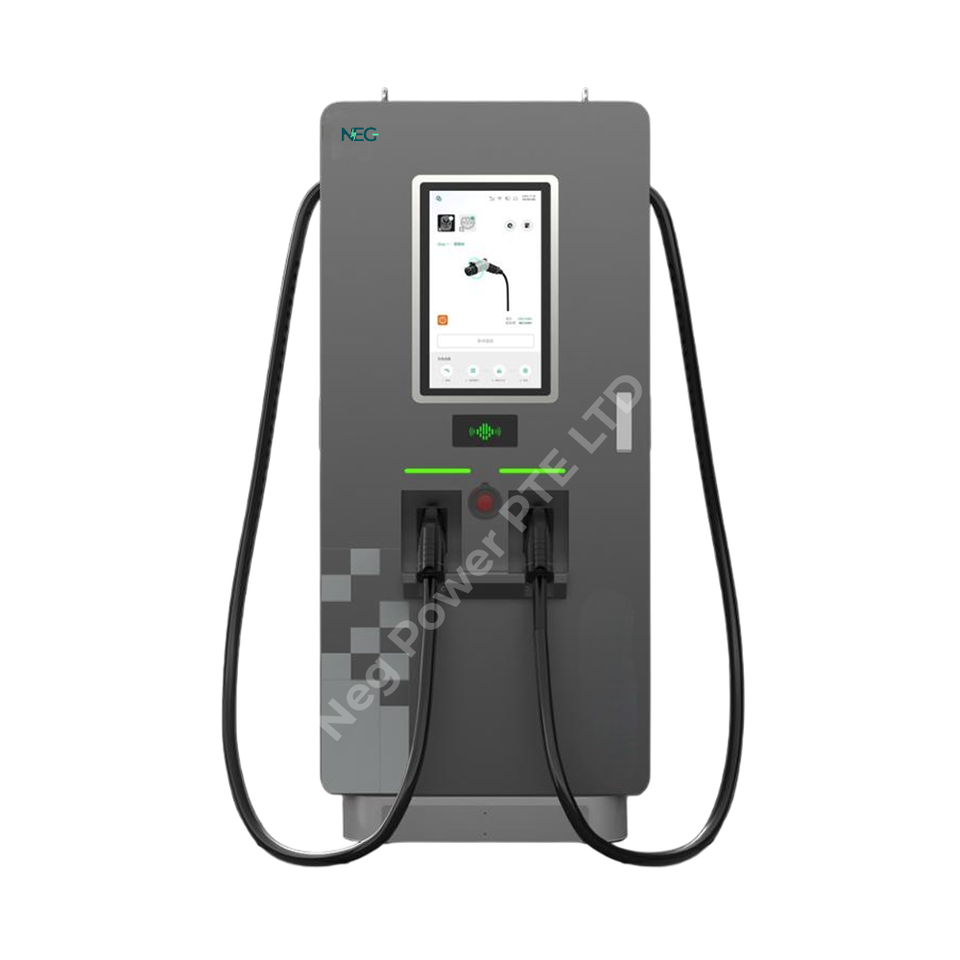 7 Inch Touchscreen New Electric Vehicle DC Charging Station NEG Floor-Stand Fast Air-Cooled Charger 2 Guns Public Commercial Use