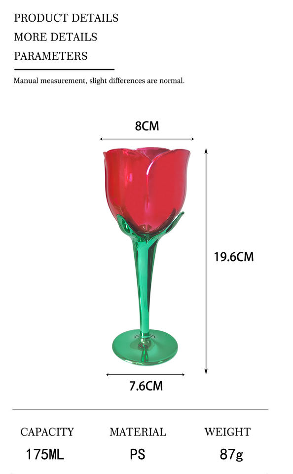 7 OZ Electroplated Rose Flower Plastic Wine Goblet Glass Drinkware for Wedding Party Celebration Valentine's Day Made in Vietnam
