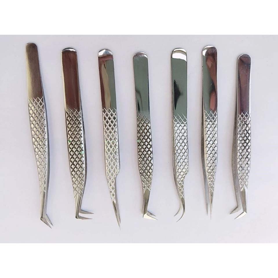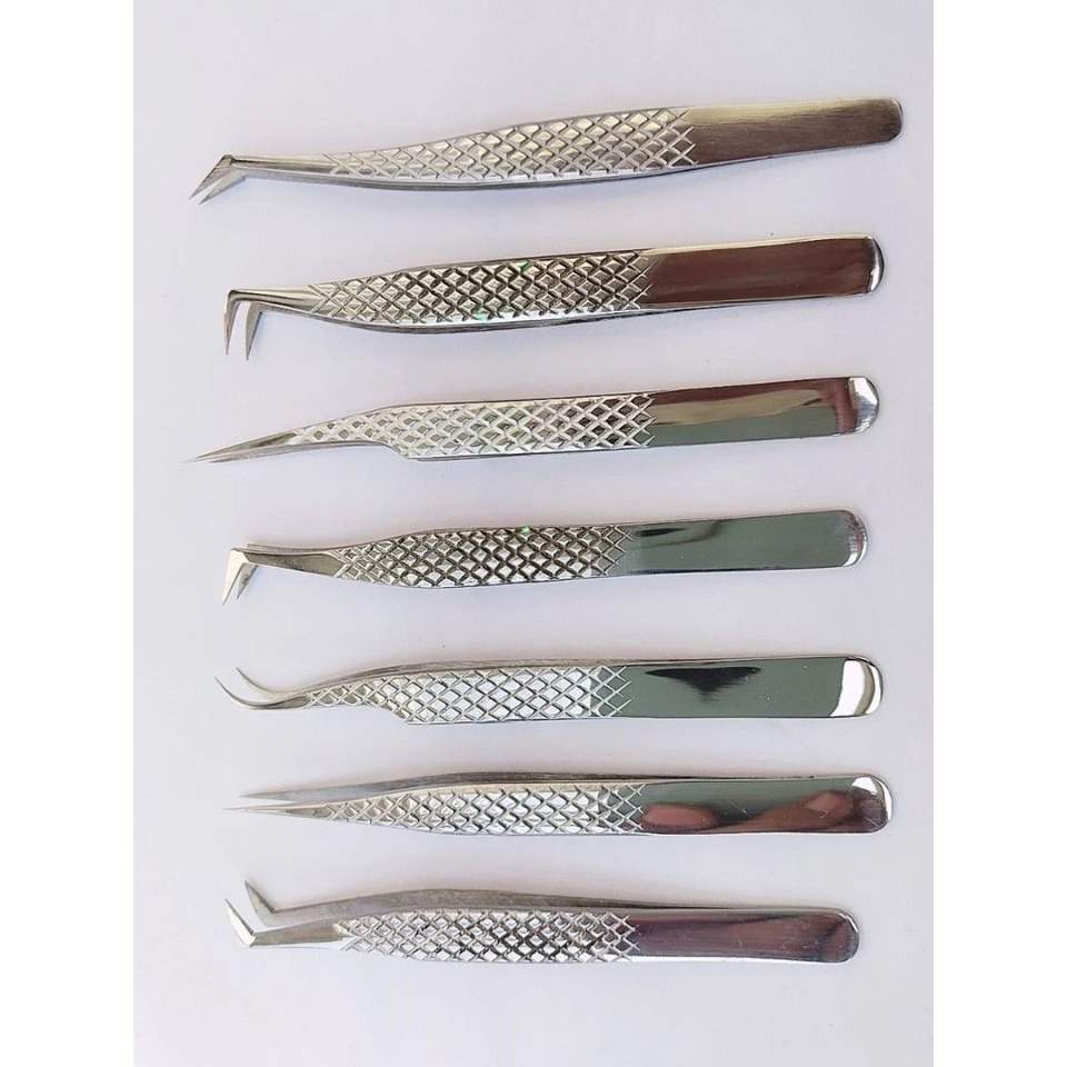 7 Pcs Eyelash Extension Tweezers Set Curved & Straight Stainless Steel Volume & Isolation Lash Tweezers Kit for Salon Technician