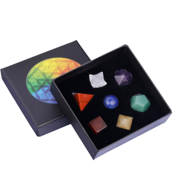 7 Pcs Platonic Solid Set Sacred Geometry Chakra Stone Merlin Geometry Healing Crystals Sacred Geometry Set With Wooden Box