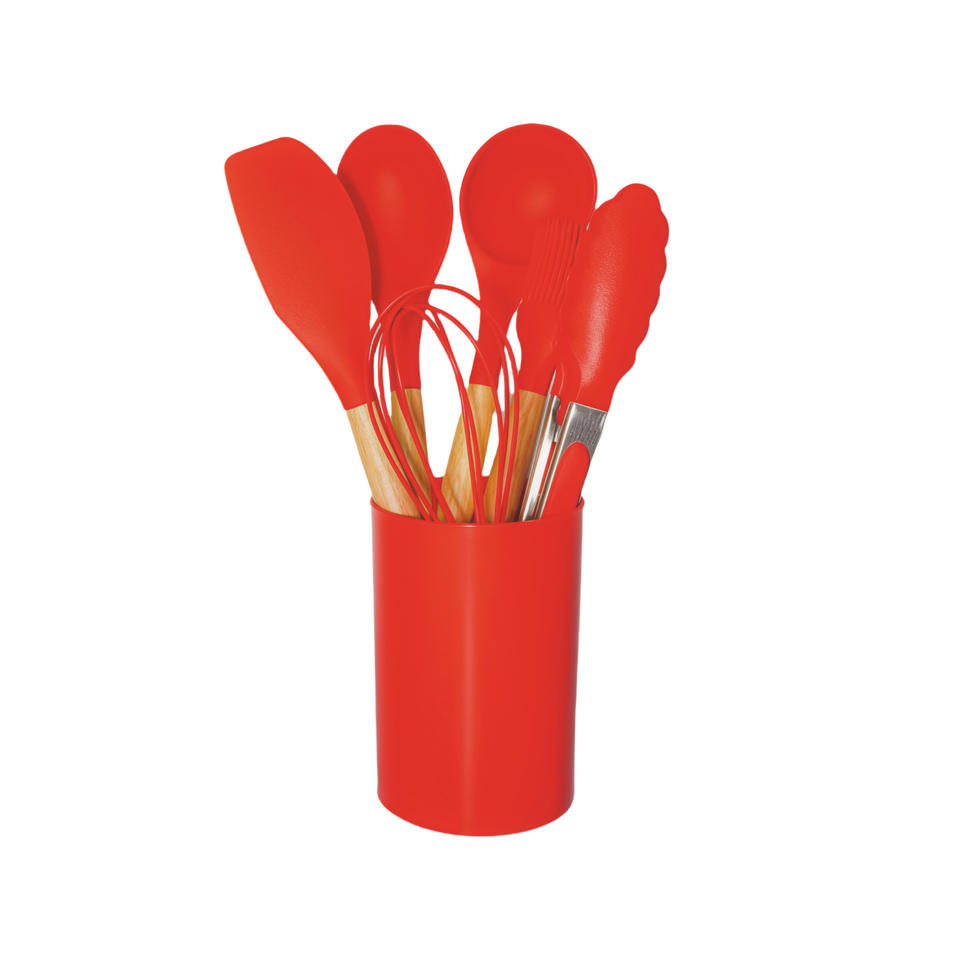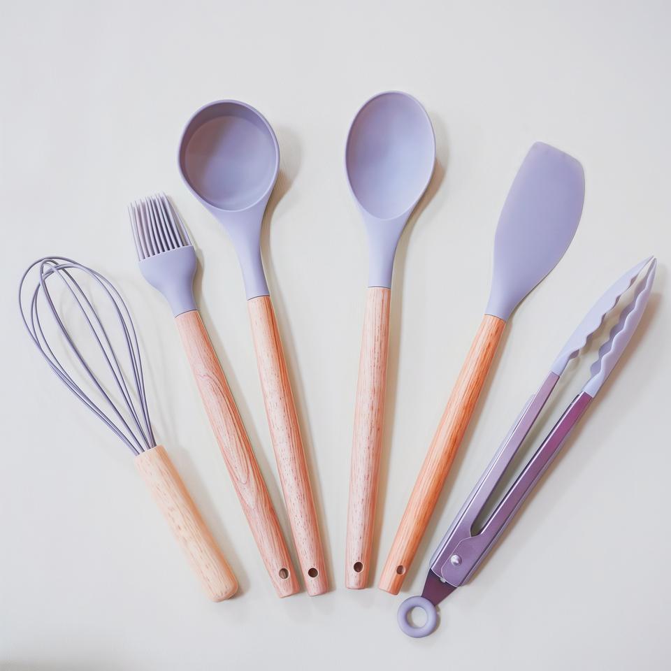 7-Piece Anti-Scalding Silicone Kitchenware Set Food Grade Cooking Shovel and Soup Spoon Combination with PP Handle Design
