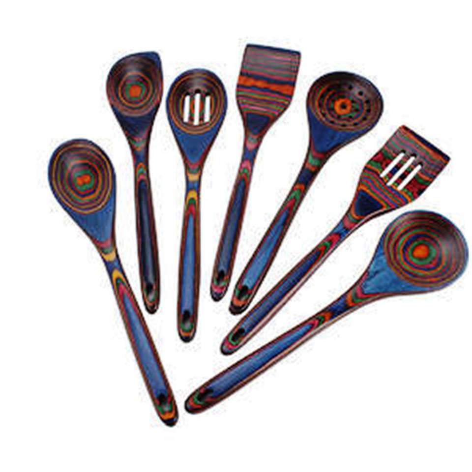 7-Piece Eco-Friendly Wooden Color Spoon Set in Natural Acacia Mango Wood Kitchen Tools Made in India with Customized Logo