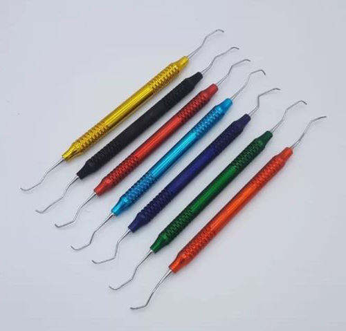 7-Piece Gracey Curette Set Multi-Color Dental Instruments Manual Power Source Plastic Steel Different Hollow Dental Scaler