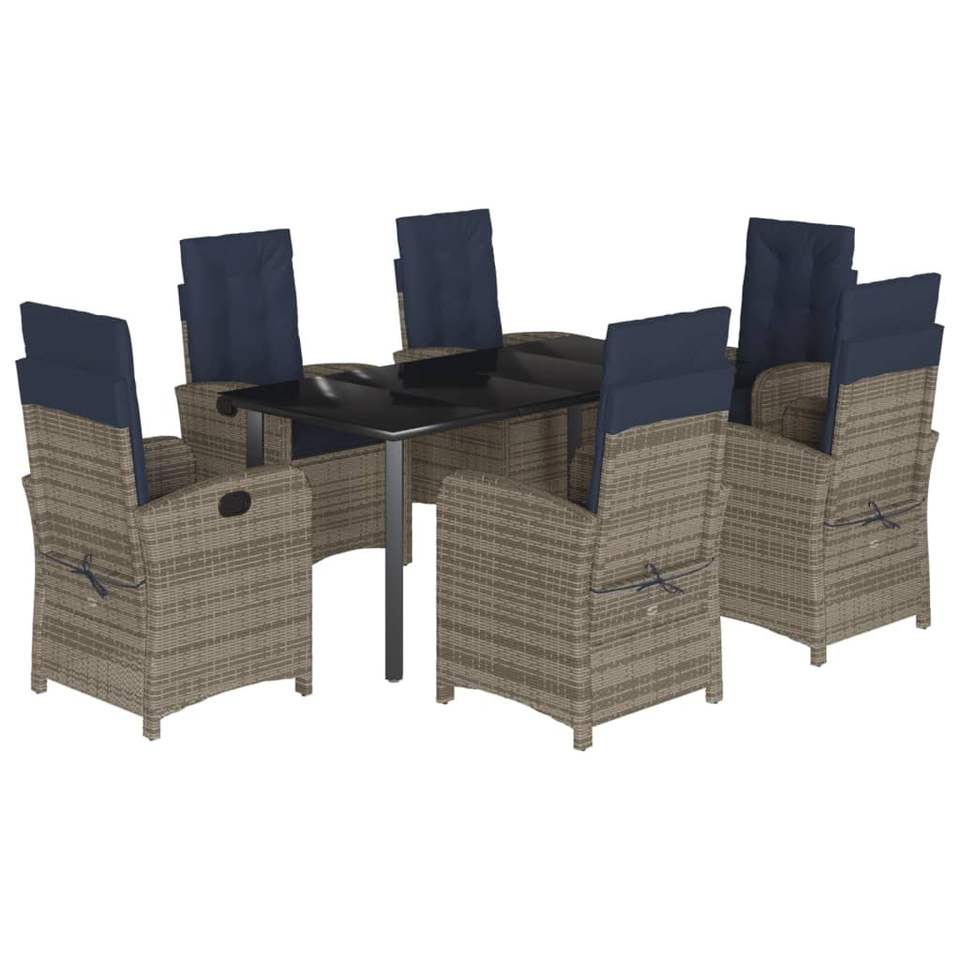 7-Piece Gray Poly Rattan Patio Dining Set with Cushions Garden Sets