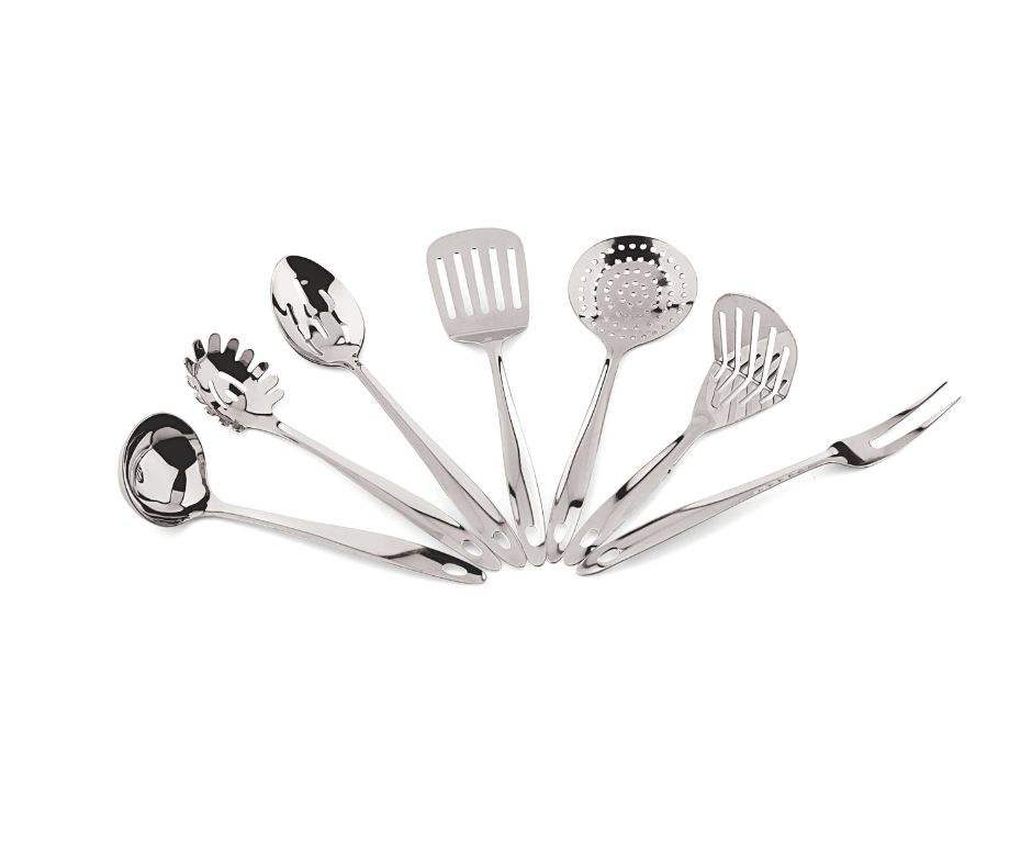 7-Piece Heavy Duty Stainless Steel Kitchen Tools Pearl Collection for Everyday Cooking Metal Cookware Utensils