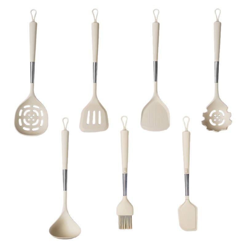 7-Piece New Non-Stick Silicone Kitchenware Set High-Temperature Resistant Spatula Spoon with Tube Handle Utensils for Kitchen