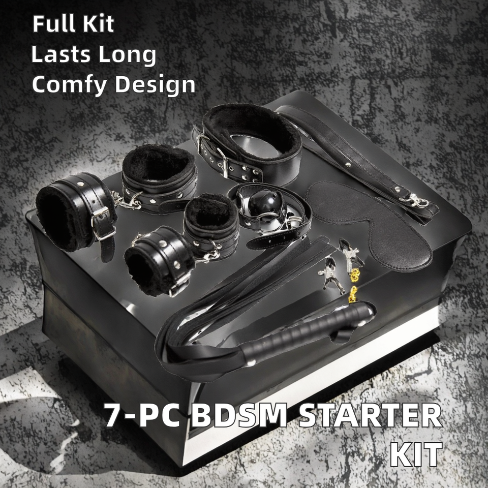 7-Piece PU Leather BDSM Bondage Kit Handcuffs Ankle Cuffs Clamps Ball Gag Blindfold Restraints for Beginner's Slave Role Play