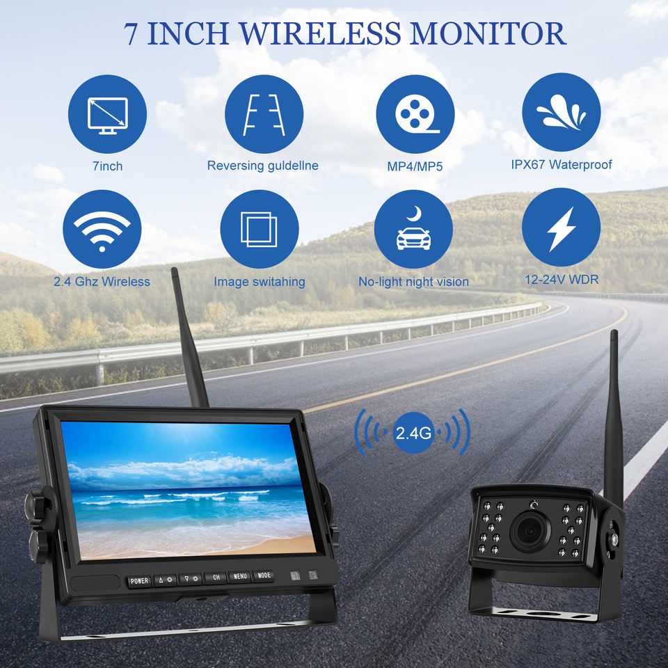 7-inch LCD 720p 4-channel Wireless Vehicle-mounted Truck Monitoring Display 360 Panoramic Image Recorder Multi-Language Support