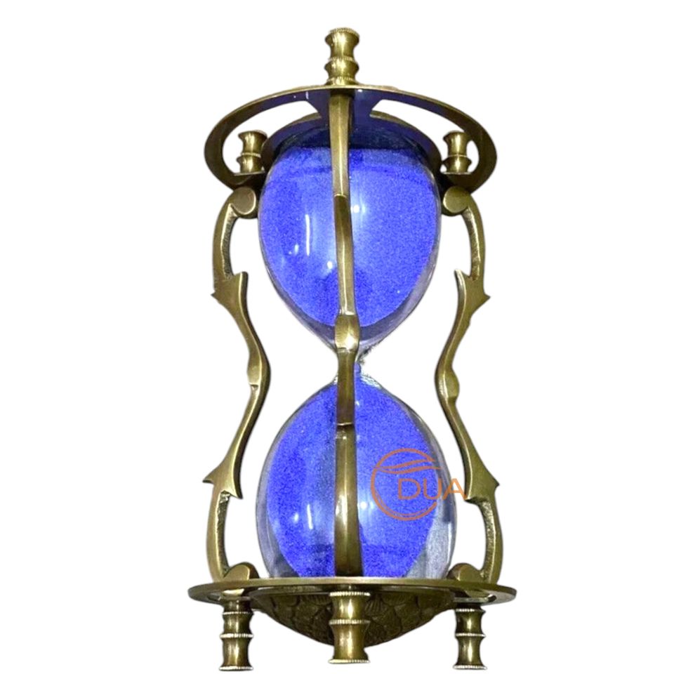 7-inch Antique Style Brass Hourglass with Blue Sand, 5-Minute Sand Timer, Vintage Hourglass Sand Clock