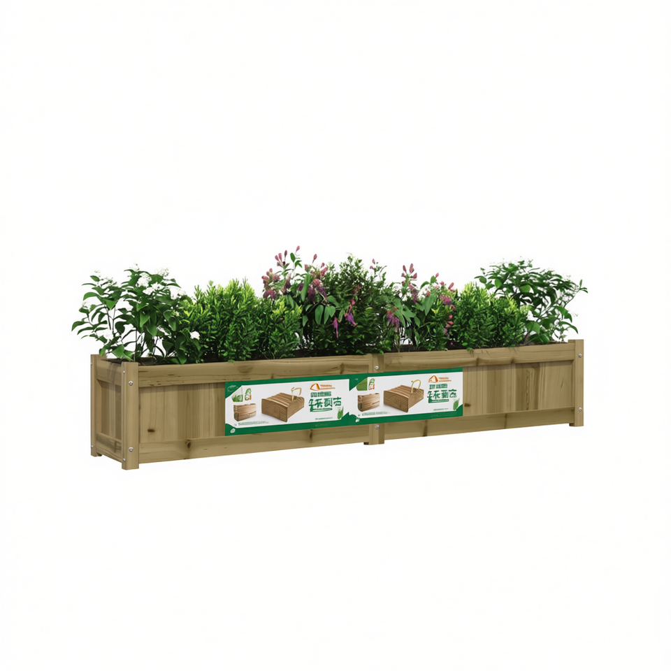 D0100H5CNB8 Pine Wood Garden Planter 70.9x12.2x12.2 In Impregnated Rustic Style For Flower Pots Outdoor Use