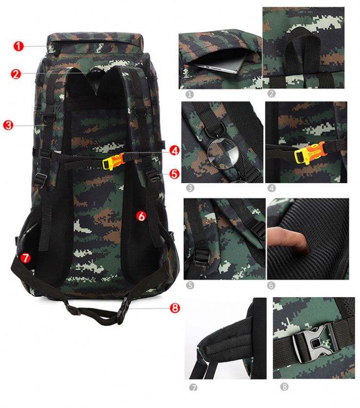 70L Large Capacity Outdoor Waterproof Backpack Camping Duffel Tactical Backpack Sports Hiking Bag