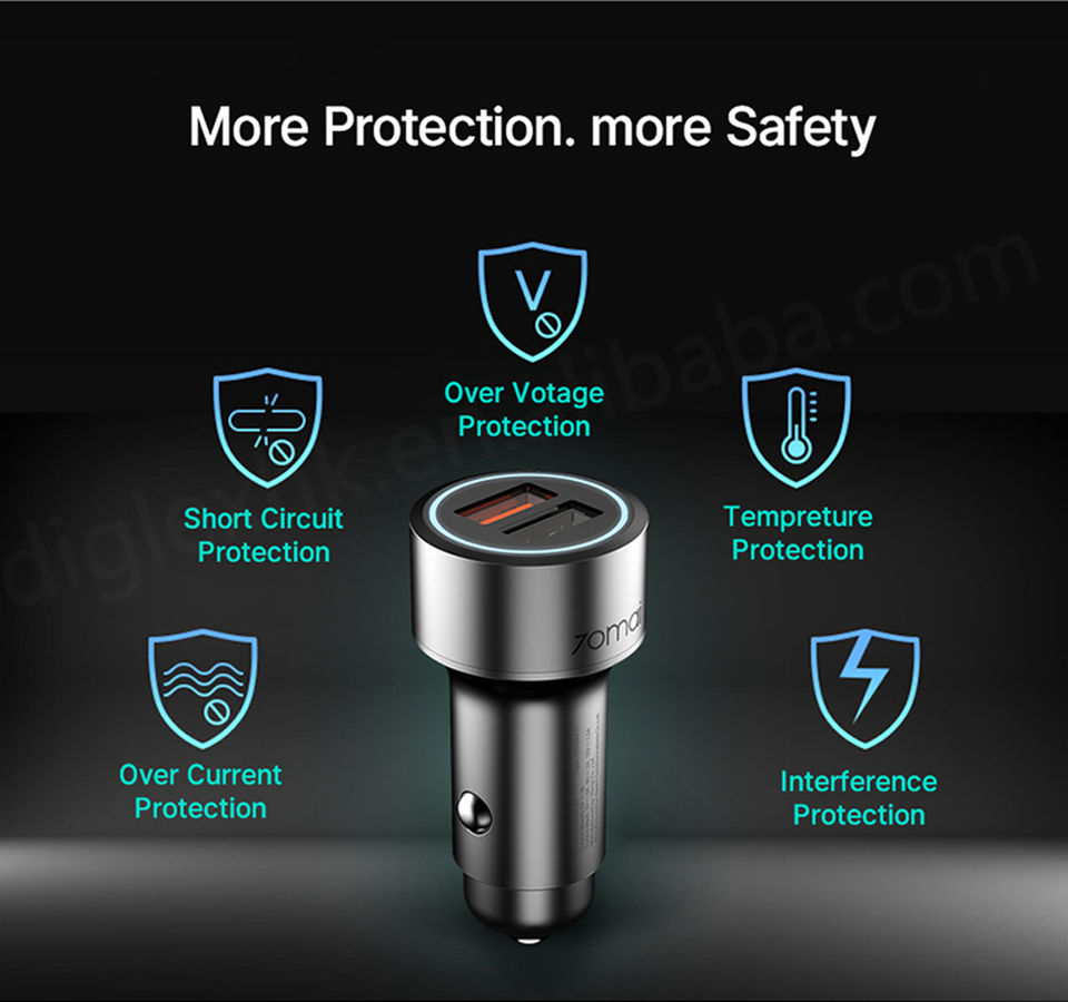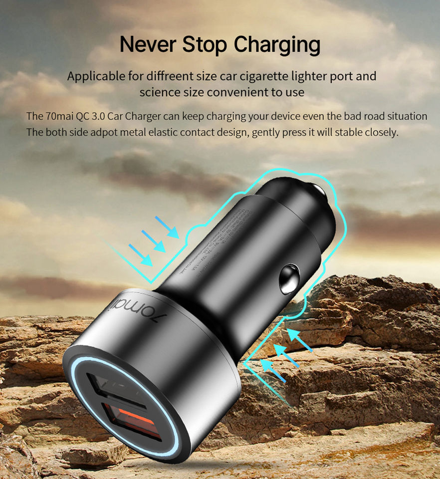 70mai QC 3.0 Quick Charge Metal Case Mini 2USB Port 70mai Car Charger 70MAI Dual USB Car Mobile Charger
