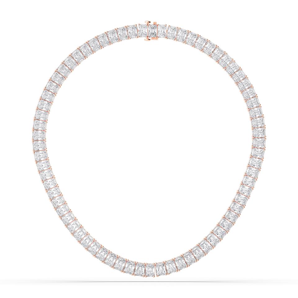 71.00 Carat Radiant Cut Diamond Tennis Necklace F-G/VS Lab Grown Made in Sterling Silver for Her