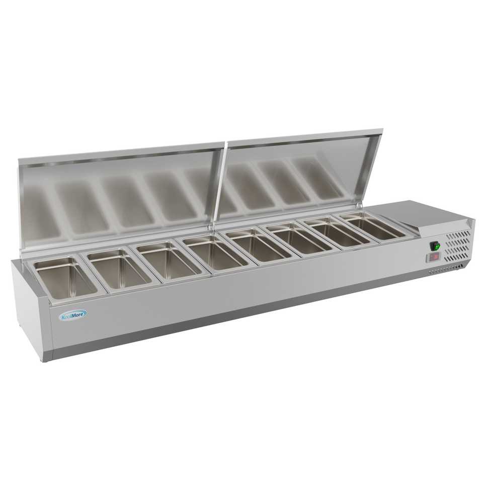 71-Inch SCDC-8P-SSL Commercial Kitchen Refrigeration Eight Pan Condiment Prep Station Refrigerated Countertop ETL Certified Side