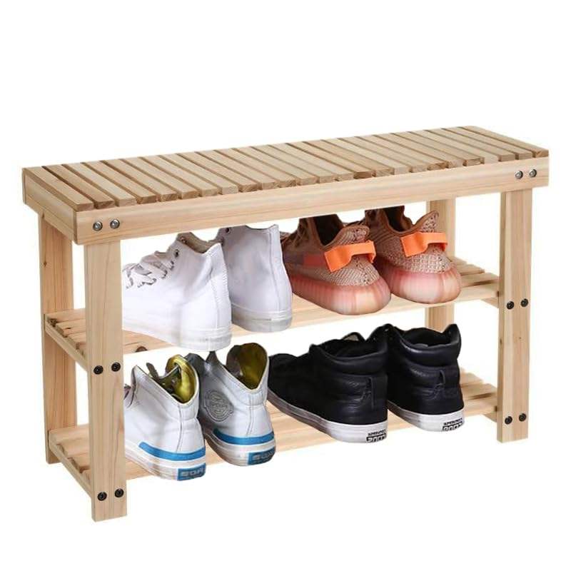 71x26x45 cm Wooden Shoe Bench with 3 Shelves for Home or Bathroom Entrances Premium Shoe Rack for Storage Furnishings"