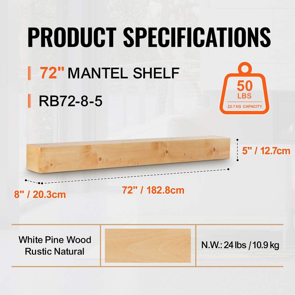 72\" Natural Rustic Floating Fireplace Mantel Wood Shelf for Wall & Display Elegant Country Style