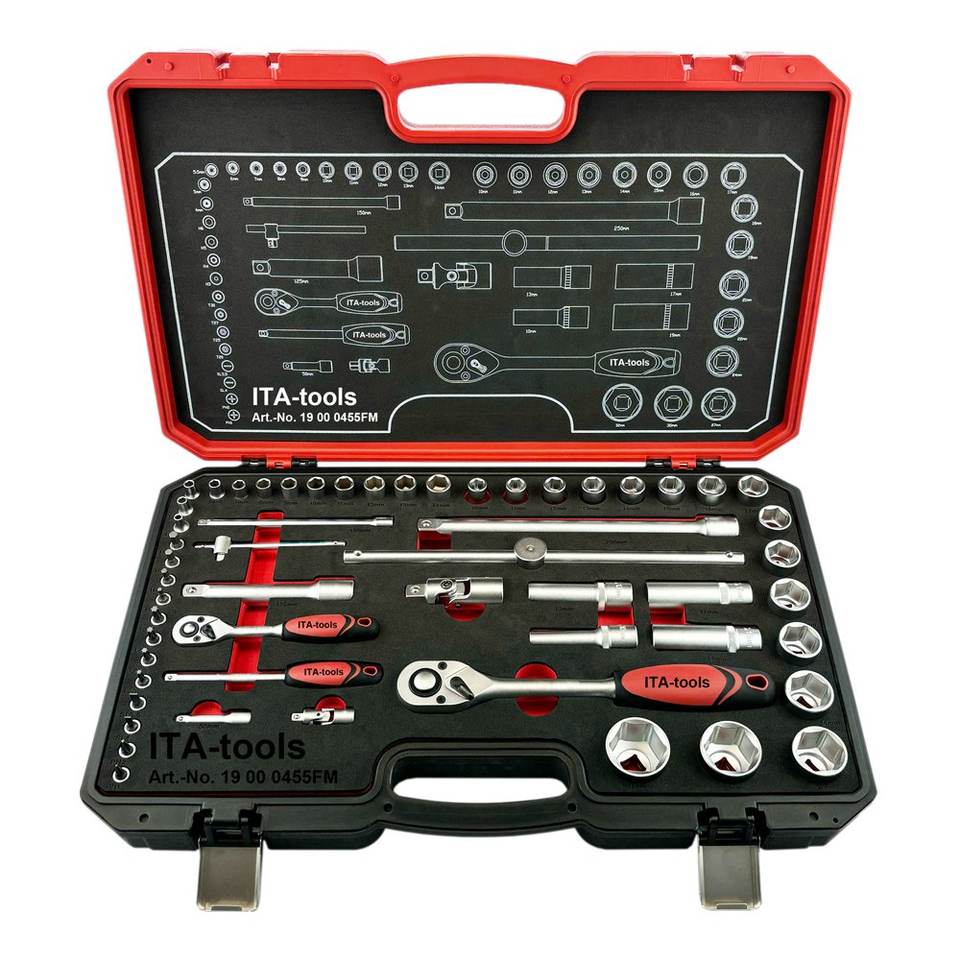 72T Ratchet Socket Set 55PCS 1/2\" & 1/4\" Drive with Bit Sockets and Extension Bars Hand-Power Source OEM Customizable