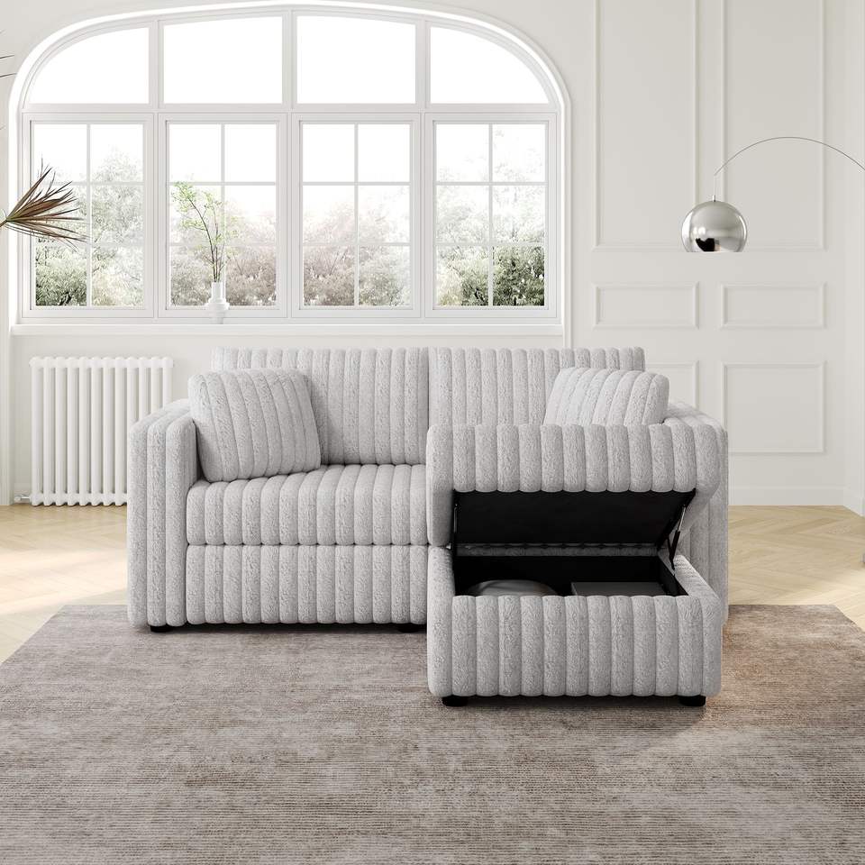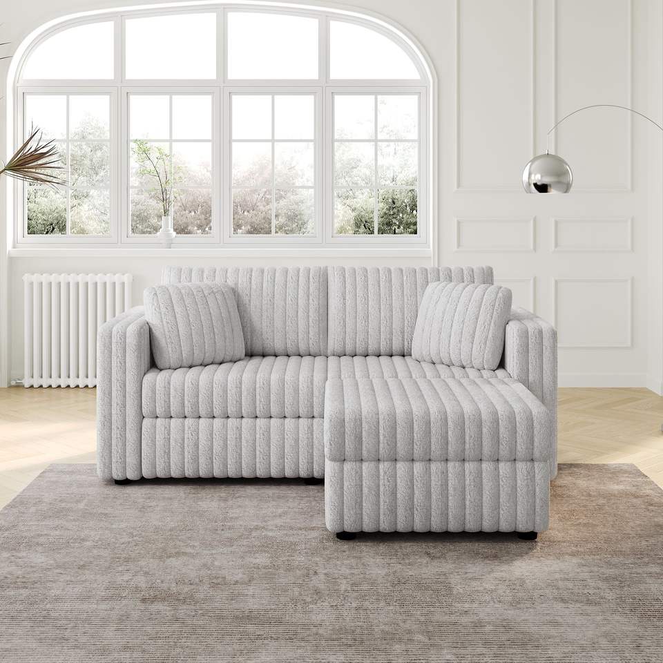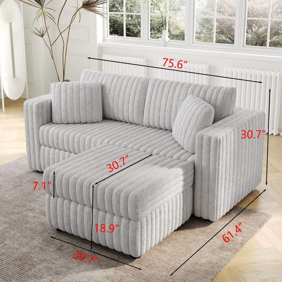 75.6 Soft Rabbit Plush Modular 2-Person Sofa with Hydraulic Lift Highly Comfortable Stylish 30.7\" Ottoman Match for Living Room
