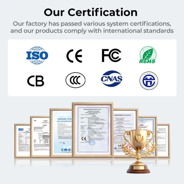 Certificates:CE CCC FCC ROHS CB ISO9001 ISO14001 ISO45001