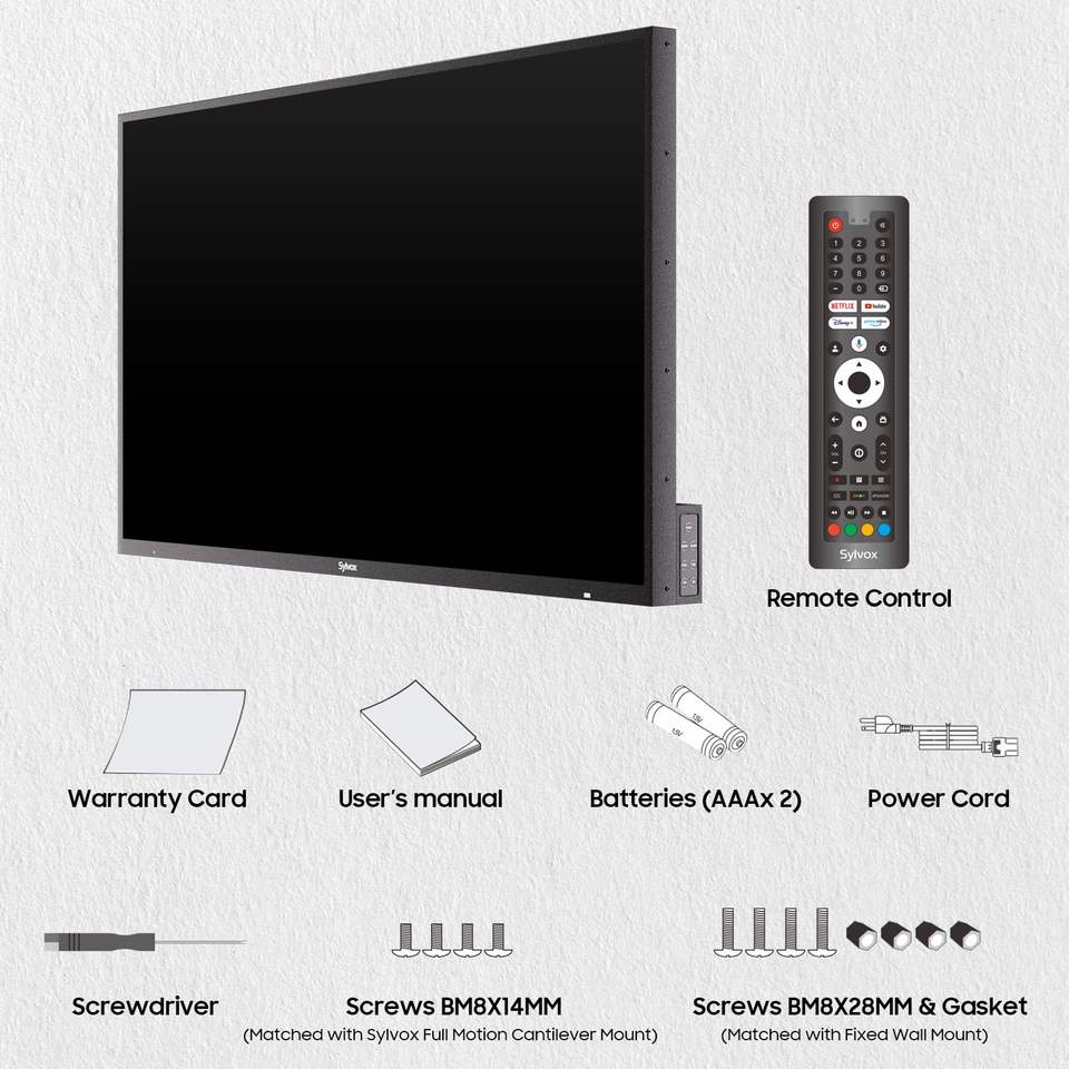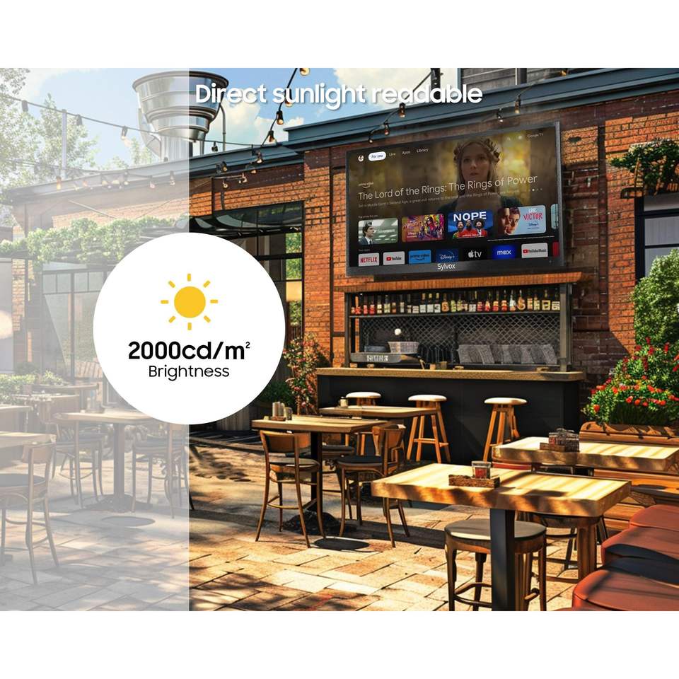 75-Inch Commercial Grade Outdoor Smart TV 4K UHD 2K Full Sun Readable Display Weatherproof Waterproof Built-in Speakers