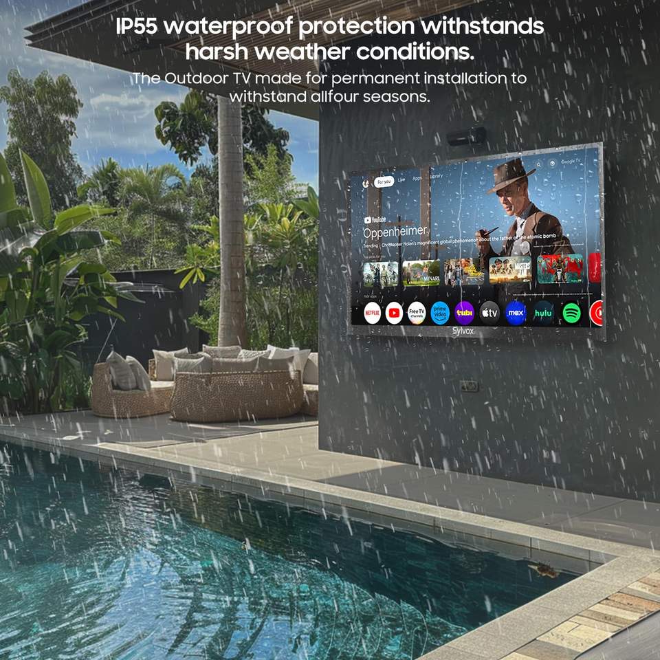 75-Inch Outdoor Smart TV 4K UHD 2000 Nits HDR10 Waterproof IP55 DVB-T2/S2/C Assistant LED Backlight 120Hz Refresh Rate for Pool