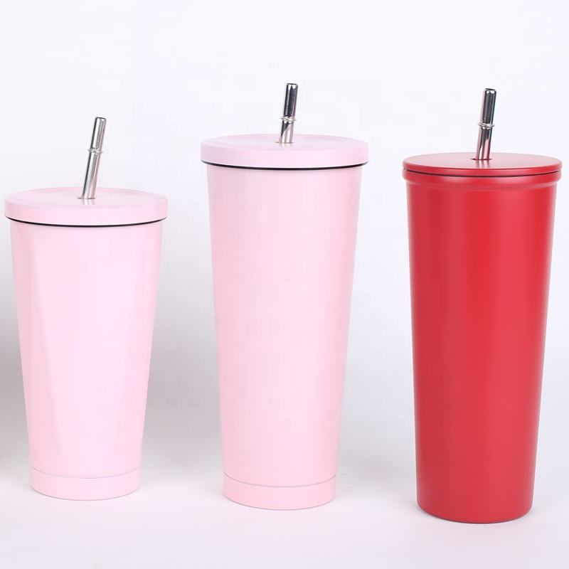 750ml Custom Logo Coffee Mugs Insulated Cups Travel Mugs Double Wall Stainless Steel Tumbler With Straw
