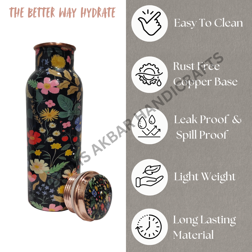 750ml Pure Metal Copper Water Bottle BPA-Free Leakproof Lightweight Popular Custom Printed Direct Drinking Drinkware for Water