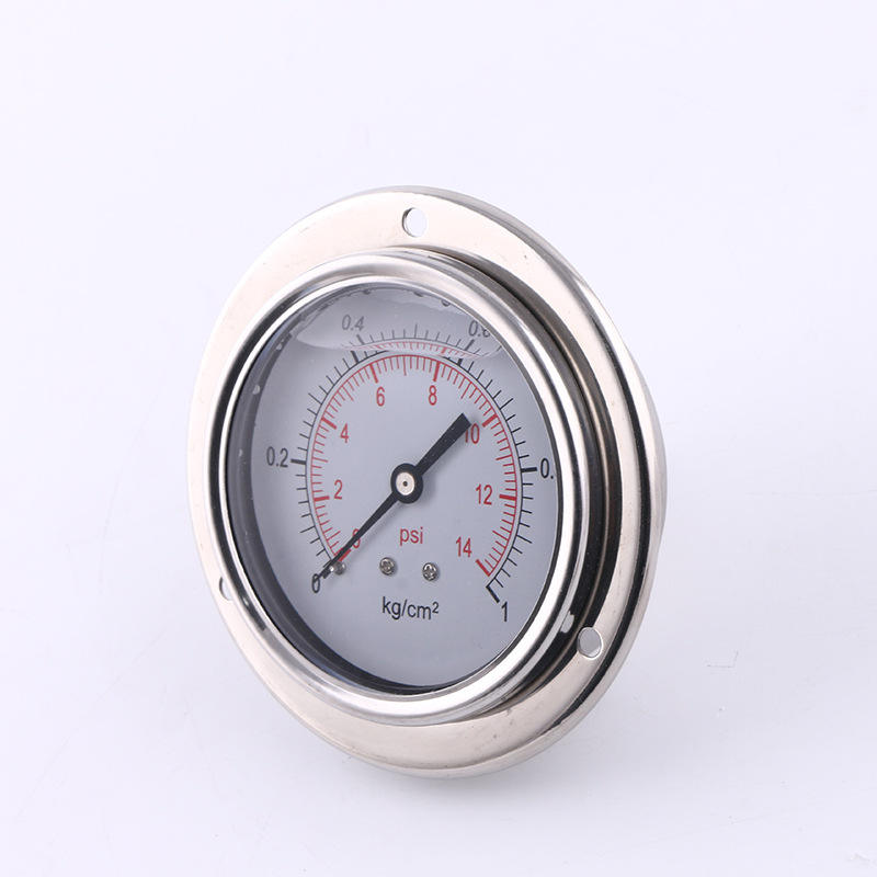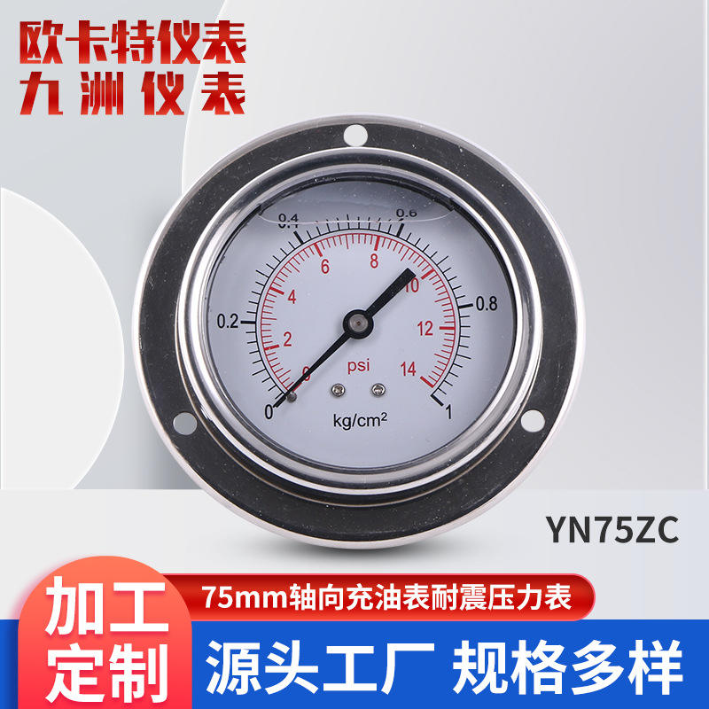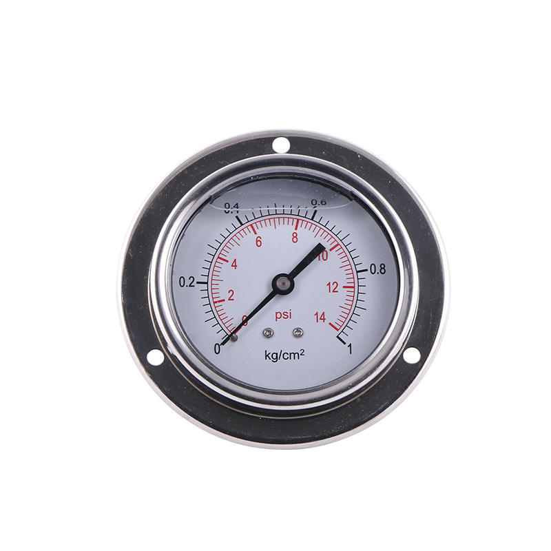 75mm Axial Oil-Filled Stainless Steel Pressure Gauge Shock-Rresistant with Copper Connector and Three-Hole Front Flange