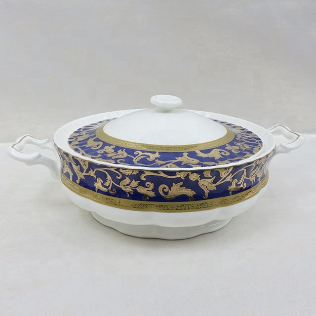 75pcs High Quality Fine Bone China Cup Kit Dinner Set with Gold Inlay Pattern and Custom Logo